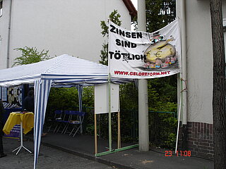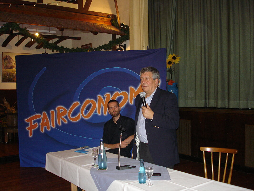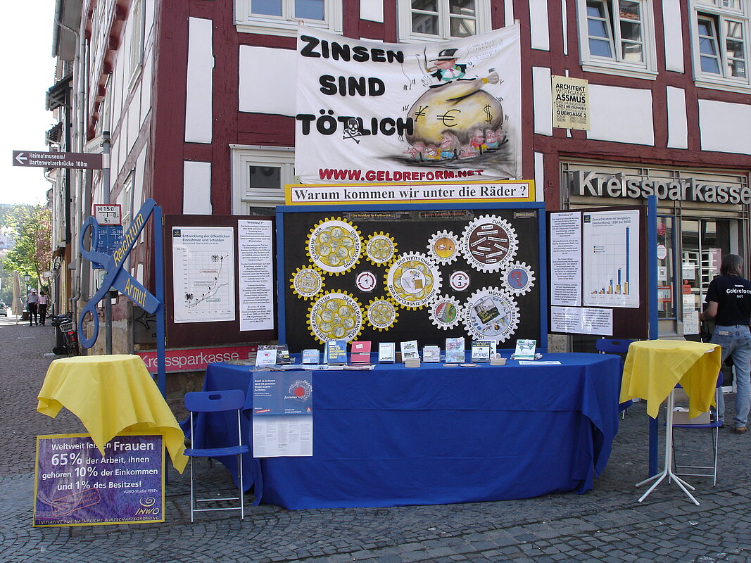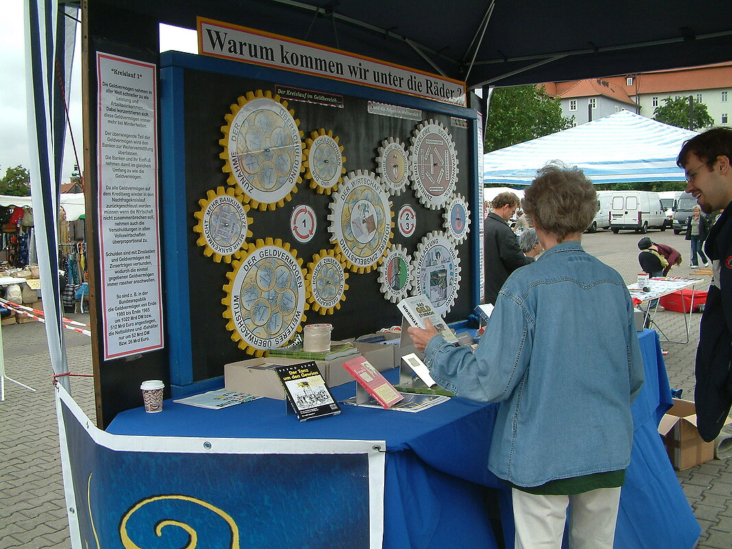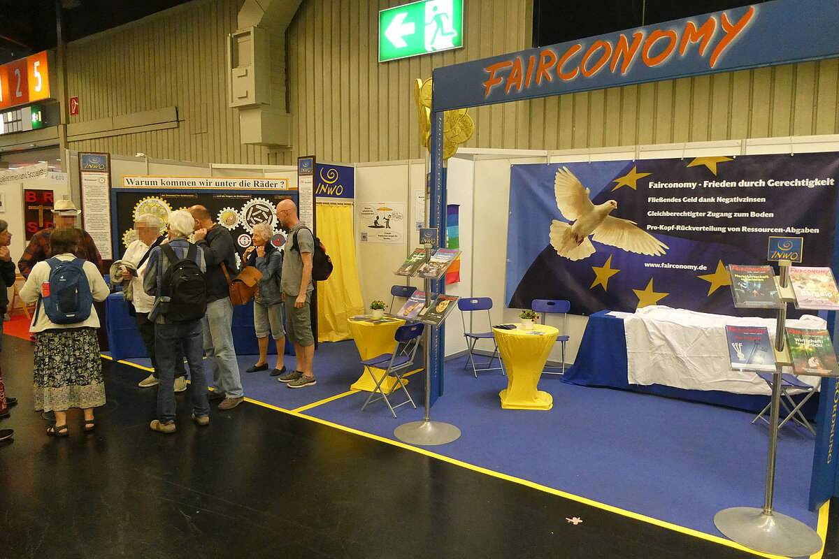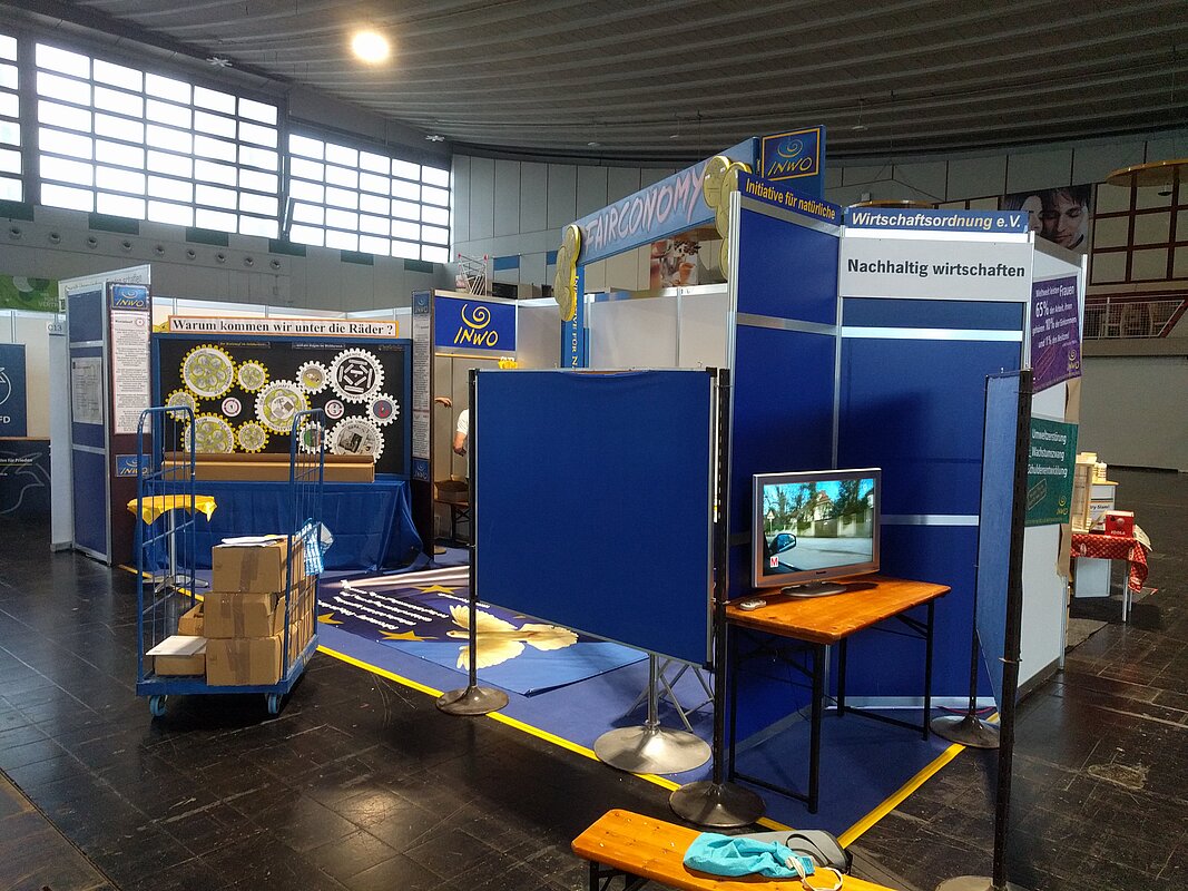 Am Stand hatten wir wie immer sehr viele Gespräche, lange und kurze, mit wechselnder Resonanz. Tatsächlich haben viele der Verweilenden einiges Vorwissen zum Thema und so mancher erinnert sich auch an die früheren Kirchentagsauftritte der INWO. Zahlreiche Fairconomy-Zeitschriften wurden von den Besuchern zum späteren Lesen mitgenommen. Immerhin eine Besucherin war direkt so überzeugt, dass sie zum kurz nach dem Kirchentag stattfindenden INWO-Sommerfest in die Silvio-Gesell-Tagungsstätte nach Wuppertal kam.