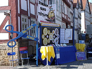 Wie schon viele Kirchentage zuvor, waren wir mit unserem bewährten Stand mit dem Creutz'schen Räderwerk vertreten. Das Räderwerk ist in seiner Größe ein besonderer Hingucker, vor allem wenn sich alle Räder drehen. Seit ein paar Jahren ist leider der elektronische Antrieb defekt, doch auch der Handbetrieb, entweder unsichtbar aus der Rückzugs- und Lagerraum hinter der Wand oder von Besuchern vor der Wand gesteuert, erregt Aufmerksamkeit. Dieses Alleinstellungsmerkmal des INWO-Stands wurde sogar in offiziellen den Markt-Empfehlungen des Kirchentags als Positiv-Beispiel genannt.
